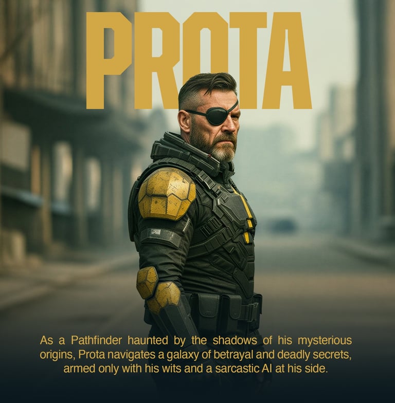 Prota: A down-on-his-luck but good-hearted Pathfinder who stumbles into a galactic conspiracy, forcing him to confront a destiny he never knew he had. His journey is one of survival and self-discovery in a universe far more dangerous than he ever imagined.