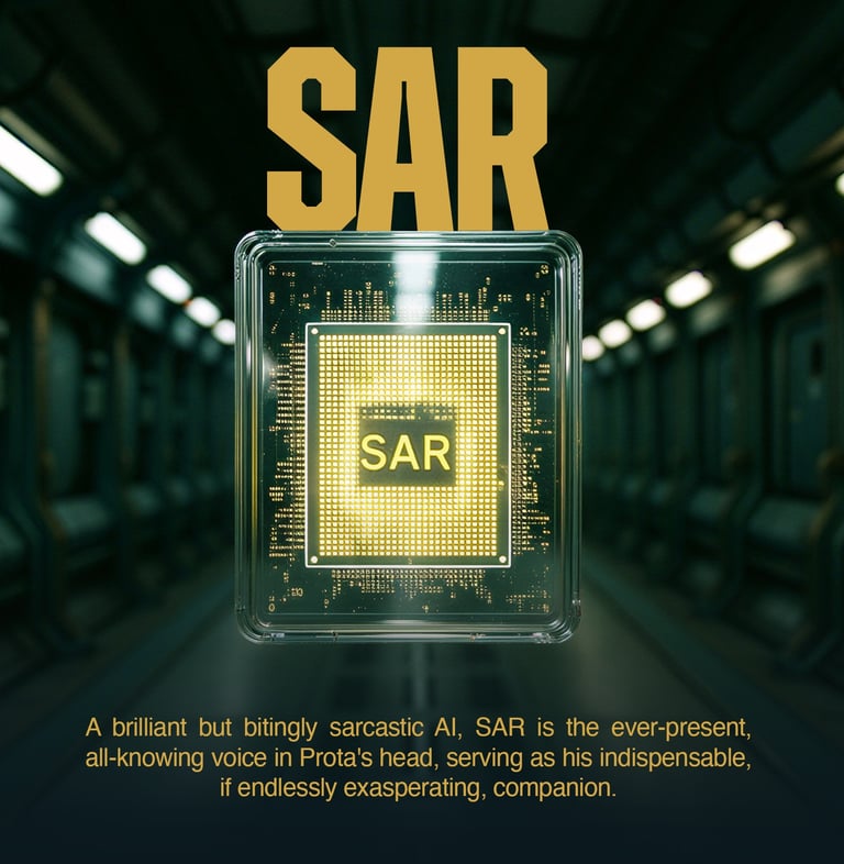 SAR: An incredibly powerful and sarcastic AI who serves as the crew's unwilling tactical genius and navigator. While constantly mocking her human companions' incompetence, she is fiercely loyal and the brilliant mind that repeatedly saves them from impossible situations.